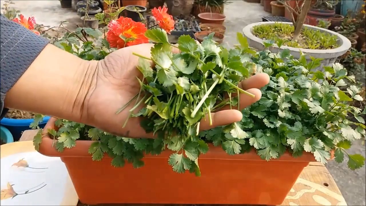 Ernte: Endlich frischer Koriander!